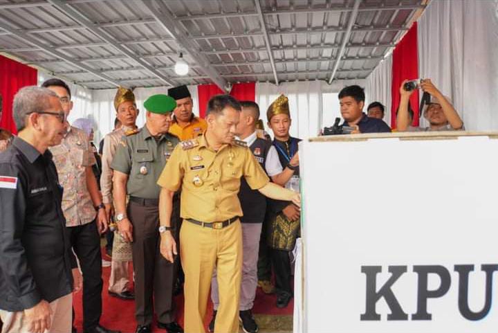 Dilaksanakan di TPS 027 Desa Tanah Merah Siak Hulu, simulasi pemungutan dan perhitungan suara tersebut dihadiri langsung Pj Bupati Kampar Hambali, SH,MH bersama Ketua Komisi Pemilihan Umum (KPU) Kampar Maria Aribeni, S.Si, M.Si.