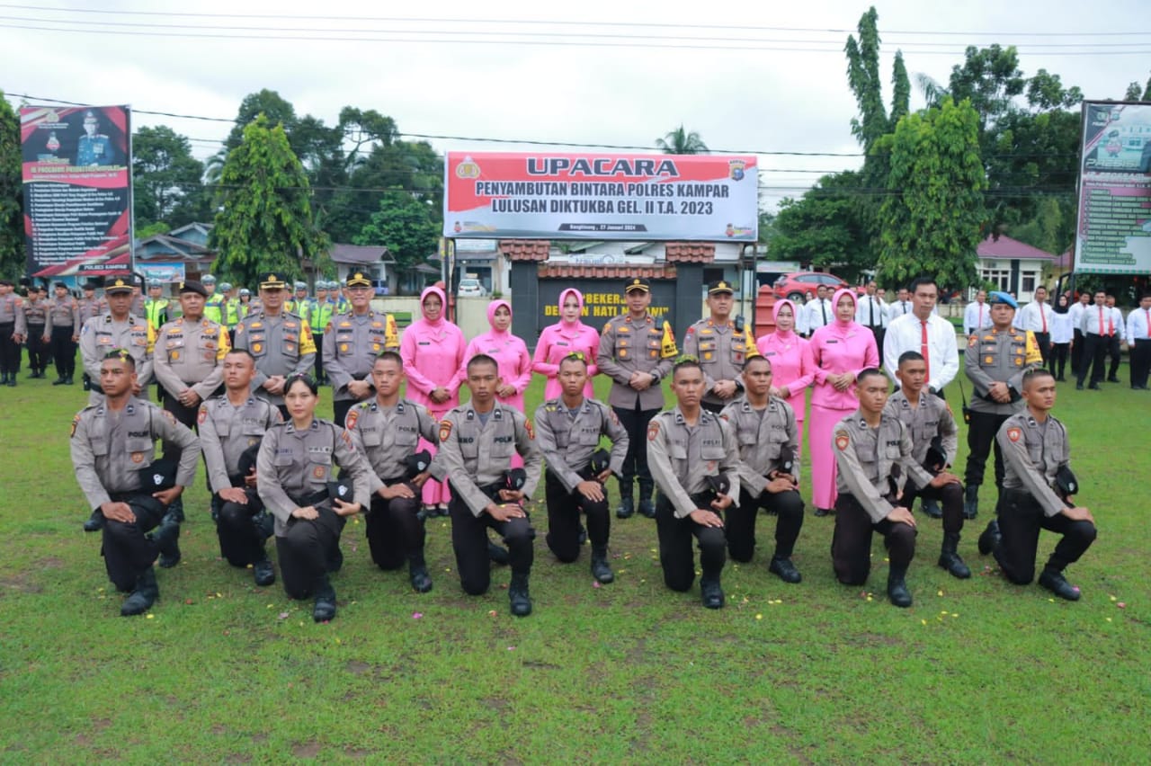 Lebih lanjut, selamat bergabung nantinya di keluarga besar Polres Kampar, jangan hanya mengandalkan ilmu yang diperoleh saat pendidikan pembentukan dulu, terus berlatih serta kembangkan kemampuan dan keterampilan kepolisian demi terwujudnya Polri sebagai pelindung, pengayom dan pelayan masyarakat.