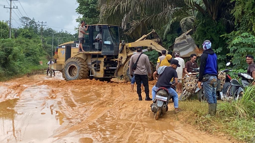 Selanjutnya, sekitar pukul 09.45 Wib, satu unit alat berat tiba di lokasi dan langsung melakukan pembersihan badan jalan.