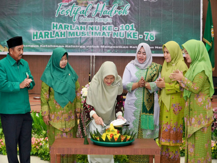 Wawasannusantara.com, Bangkinang Kota — Dalam rangka Hari Lahir (Harlah) Muslimad NU Ke-78 dan NU Ke-101, Pj Ketua TP PKK Kabupaten Kampar Ricana Djayanti Hambali membuka secara resmi festival Hadroh Se-Provinsi Riau tahun 2024 yang ditandai dengan pemotongan tumpeng yang berlangsung di aula kantor Bupati Kampar, Minggu (25/02/2024).