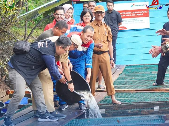 Wawasannusantara.com, Bangkinang — Pj Bupati Kampar diwakili oleh Asisten III Administrasi Umum Setda Kampar, Azwan didampingi Camat Tapung Hilir Nurmansyah, S.STP bersama masyarakat setempat turut hadir dalam acara peresmian program keramba apung yang diselenggarakan oleh Pertamina Gas ORA, Selasa (04/03/2024).