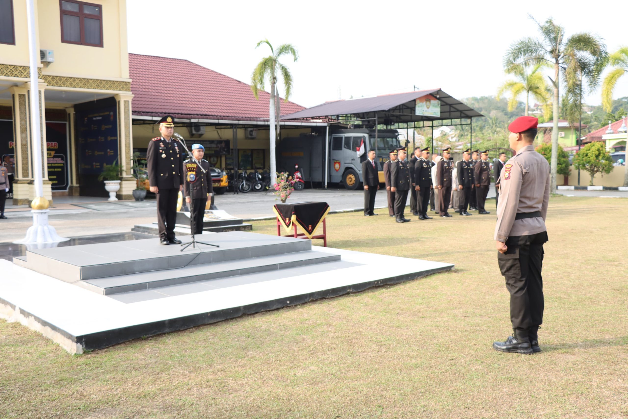 Kapolres Kampar AKBP Ronald Sumaja yang di wakili oleh Waka Polres Kampar Kompol Andi Cakra Putra menjadi Inspektur upacara kegiatan ini juga dihadiri oleh Pejabat Utama Polres Kampar, Kapolsek Jajaran dengan peserta personil Polres Kampar.
