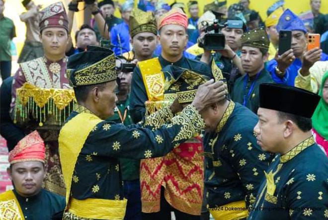 Bupati Siak menyampaikan gelar adat ini merupakan suatu penghargaan dan pengakuan yang tinggi dari masyarakat adat kepada Tuan Bupati dan Tuan Wakil Bupati atas dedikasi, integritas, serta kontribusi nyata yang telah diberikan kepada masyarakat Siak.