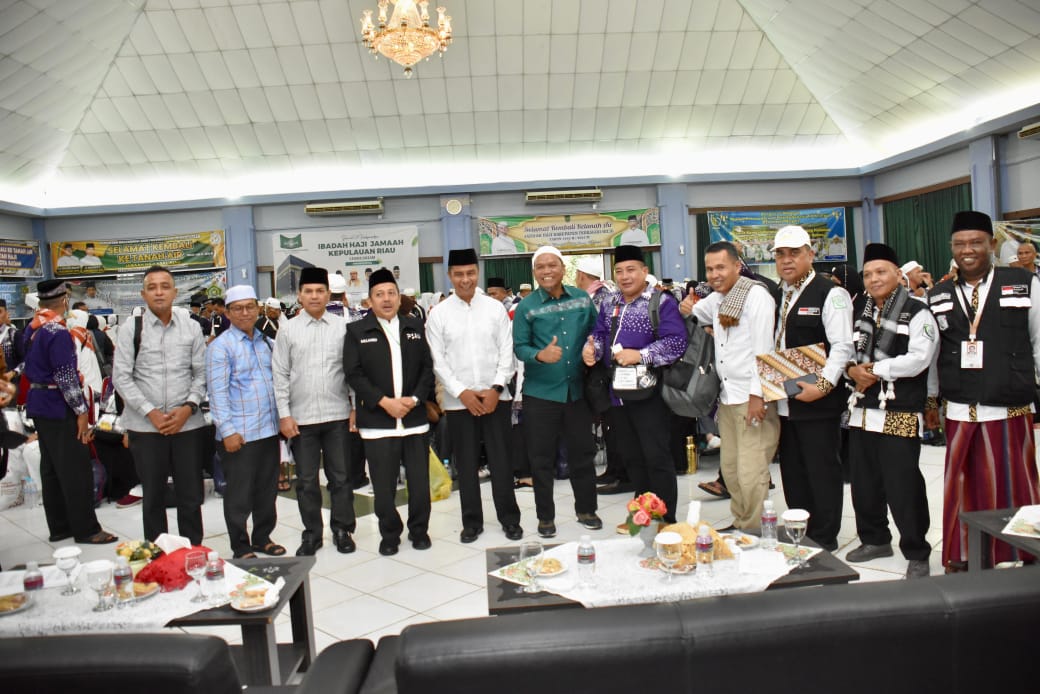 Wawasannusantara.com, Batam — Pj Sekda Kampar, Ahmad Yuzar sambut kedatangan jemaah haji kloter V BTH asal Kabupaten Kampar di aula Arafah 1 Asrama Haji Batam Center, Kamis (27/06/2024). Tampak Ahmad Yuzar didampingi Kasatpol PP Kampar Arizon, Kabag Kesra Muhammad Syarief, Anggota DPRD Kampar Muhammad Anshor, Kabid Trantib Hamdanis dan pihak Kemenag Kampar.