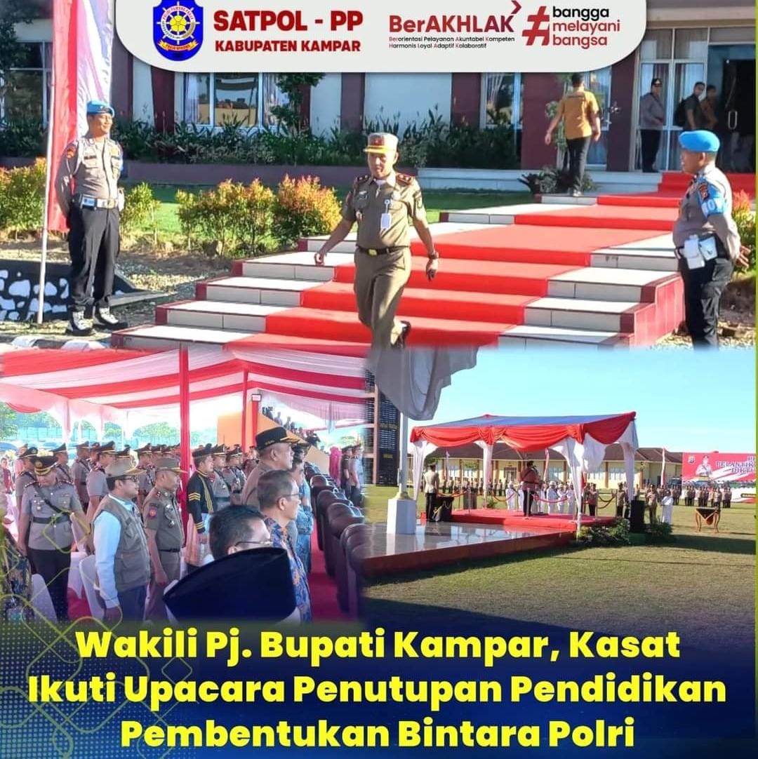 Wawasannusantara.com, Kampar — Pj.Bupati Kampar yang di wakili Kasat Pol PP hadiri upacara penutupan Pendidikan Pembentukan Bintara (Diktukba) Polri Sekolah Polisi Negara (SPN) Polda Riau Tahun Ajaran (TA) 2023 – 2024 di Lapangan Utama SPN Polda Riau, Kecamatan Tambang, pada Kamis, (11/07/2024).