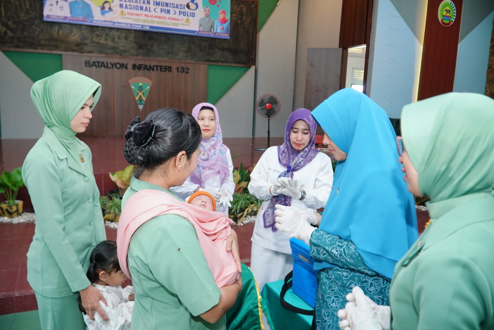 Wawasannusantara.com, Salo – Pj Ketua TP. PKK Kabupaten Kampar Ny. Ricana Djayanti yang merupakan pengurus PKK yang di dampingi oleh Ketua Persit Amarilis Yonif 132, Ny Syifa Shopia Bambang Budi Hartanto mengikuti kegiatan gabungan bersama Persit Amarilis Yonif 132 pada acara pencanangan Pekan Imunisasi Nasional (PIN) polio yang di laksanakan pada aula Batalyon Infantri 132 Bima Sakti. Selasa (23/07/2024)