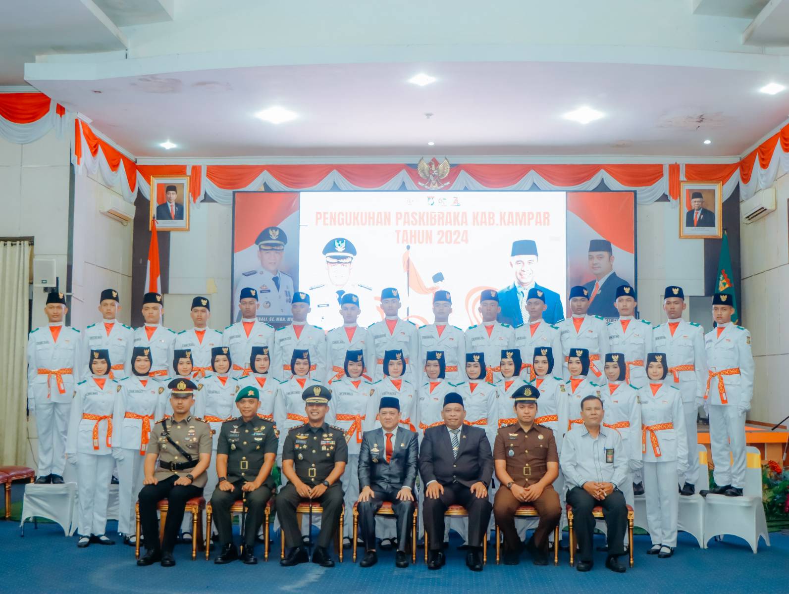 Wawasannusantara.com, Bangkinang Kota — Pj. Bupati Kampar Hambali, SE, MH mengukuhkan 30 orang putra-putri terbaik yang berasal dari 21 Kecamatan yang ada di Kabupaten Kampar untuk menjadi anggota Pasukan Pengibar Bendera Pusaka (Paskibraka) Tahun 2024. Upacara pengukuhan anggota Paskibraka digelar di aula Balai Bupati Kampar, pada Kamis (15/08/2024).
