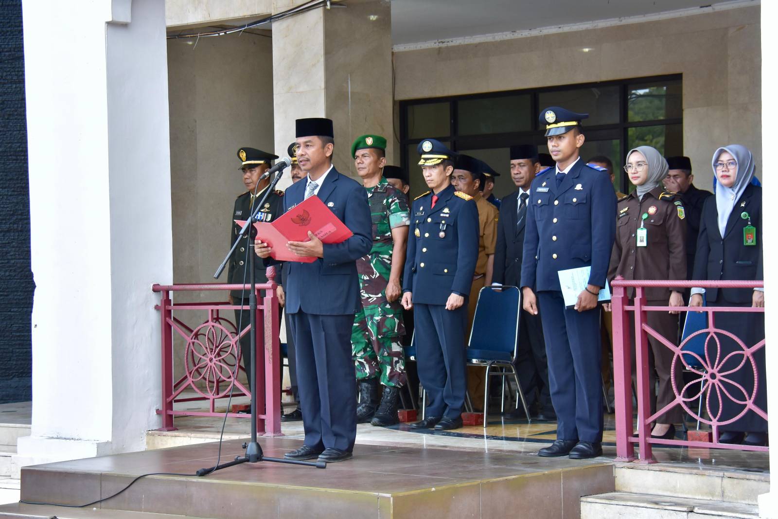 Upacara yang dipimpin Pj Bupati Kampar H Hambali,SE,MH diwakili Pj Sekda Kampar Ahmad Yuzar,S.Sos,MT tersebut dipusatkan di Halaman Kantor Bupati Kampar Bangkinang Kota.