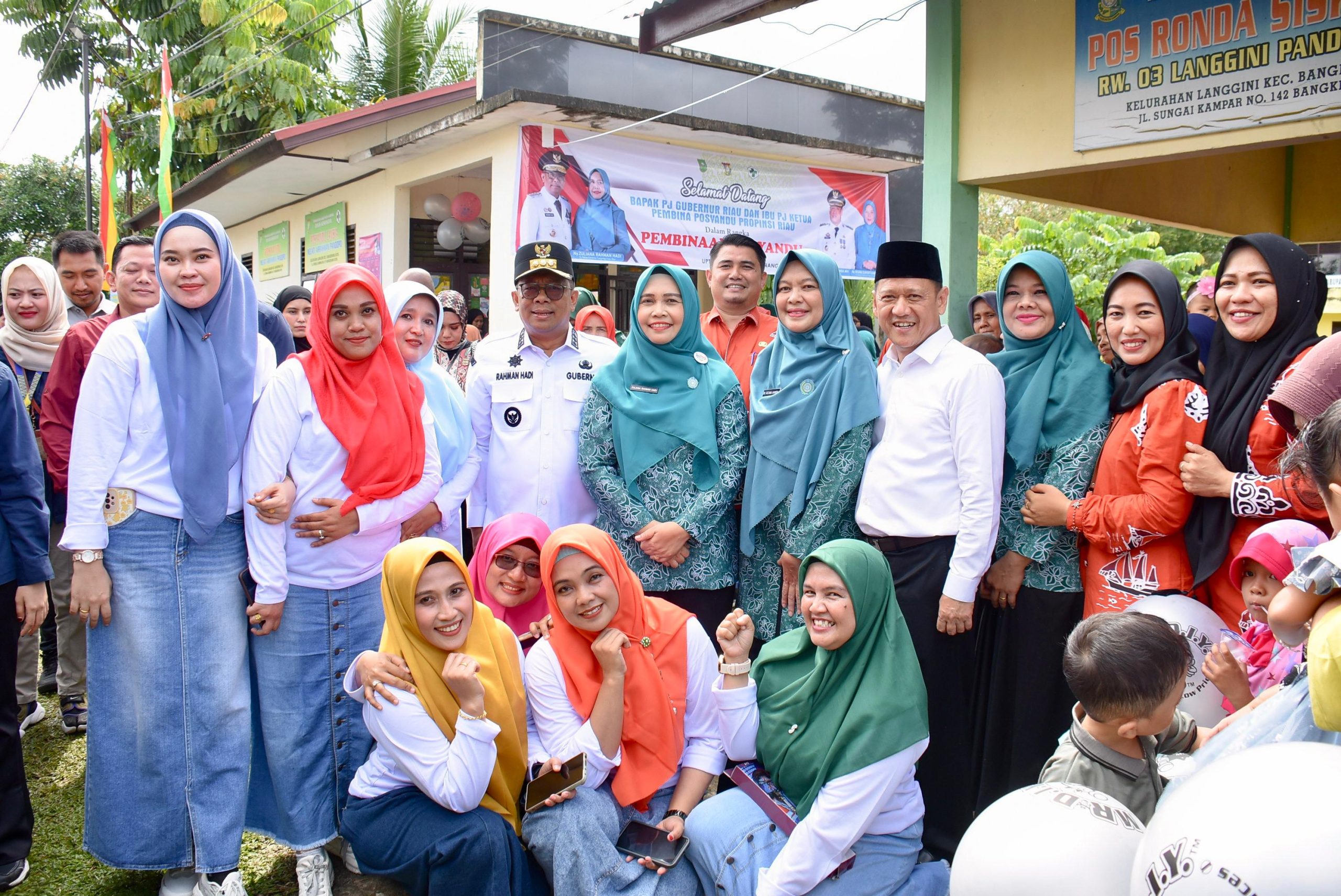 Bertempat di halaman Posyandu Melati Kelurahan Langgini Kecamatan Bangkinang Kota, rombongan untuk pertama kali tiba dan tampak disambut juga oleh Pj. Sekda Kampar Ramla, Kepala Puskesmas Bangkinang Kota dr. Yudi, para pengurus TP PKK Kabupaten Kampar, Para Tenaga Medis, Organisasi Mitra Paud, Kader Posyandu dan oleh para perwakilan dari OPD di lingkungan Pemerintah Kabupaten Kampar serta para pemuka masyarakat setempat.