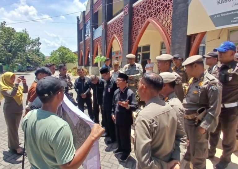 Wawasannusantara.com, Bangkinang — Sejumlah personil Satuan Polisi Pamong Praja (Satpol PP) Kabupaten Kampar berjaga mengawal memastikan aksi demontrasi berjalan kondusif di kantor Baznas Kabupaten Kampar, (23/10/2024).