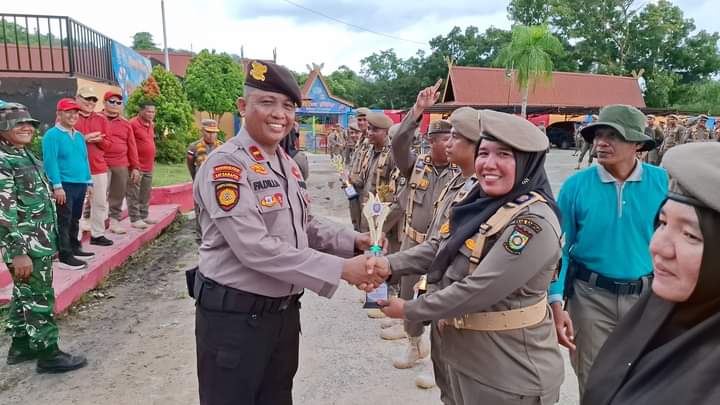 Pada kesempatan ini, Kasatpol PP Kampar ini juga tampak memberikan penghargaan kepada beberapa peserta yang menunjukkan prestasi terbaik selama pelatihan.