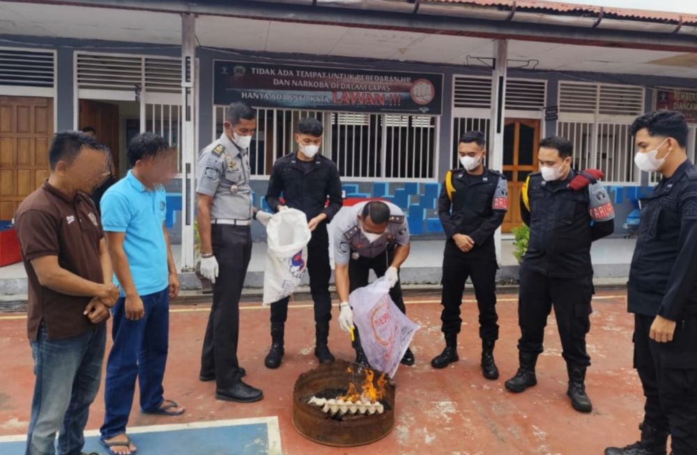 Benda-benda yang dilarang beredar di sel tahanan tersebut lalu dimusnahkan. Pemusnahan disaksikan sejumlah tahanan dan petugas jaga di Lapas.
