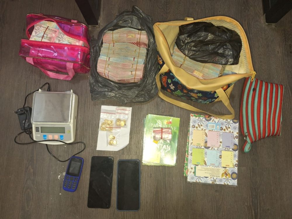Turut juga di situ, uang tunai Rp 212.522.000 dan peralatan pembakaran emas, termasuk tabung oksigen, timbangan digital, regulator gas, dan tembikar serta buku catatan transaksi.