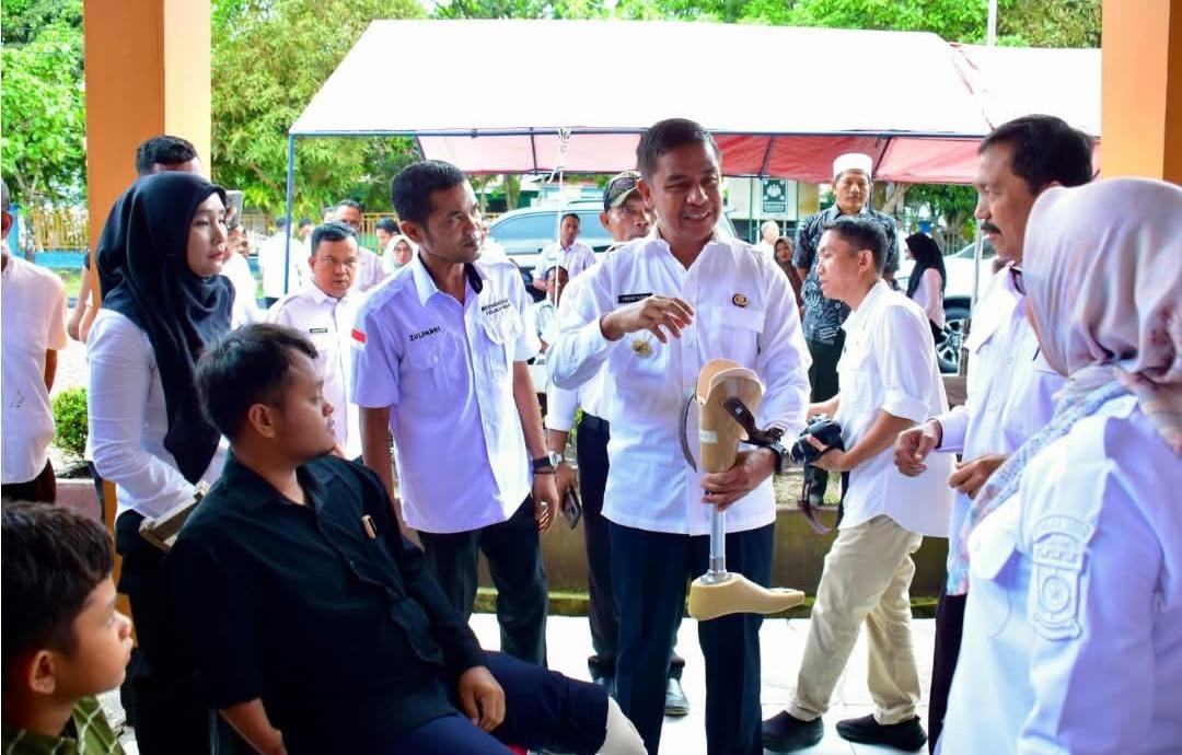 Wawasannusantara.com, Kampar — Untuk meningkatkan kesejahteraan masyarakat, Pemerintah Kabupaten (Pemkab) Kampar menunjukkan komitmennya kepada masyarakat khususnya bagi penyandang disabilitas. Bupati Kampar H. Ahmad Yuzar, S.Sos., MT bersama Wakil Bupati Kampar Dr. Hj. Misharti, S.Ag., M.Si menyerahkan secara langsung bantuan alat bantu disabilitas kepada penerima manfaat.