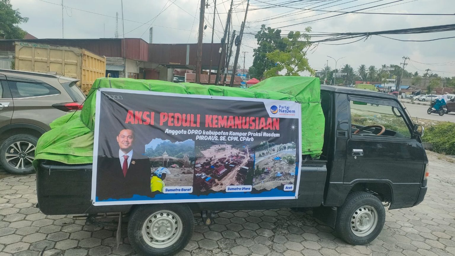 Dari Kabupaten Kampar, anggota DPRD Fraksi NasDem, Pirdaus, SE., CPM., CPArB, turut menunjukkan empati dengan mengirimkan bantuan langsung ke lokasi terdampak.